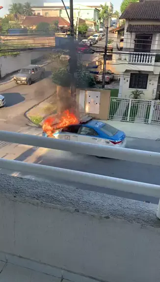 Viatura da PM pegando fogo na subida do viaduto do k11 Nova Iguaçu