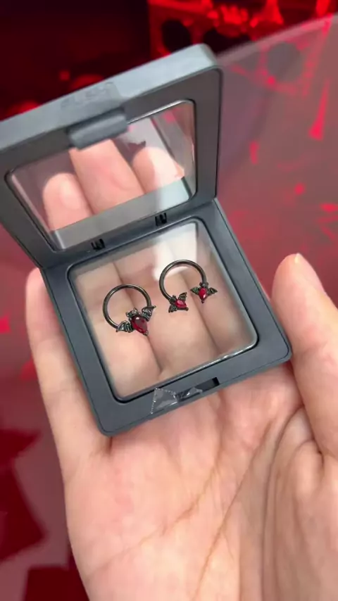 Tiny bat septum, it’s red!#septumpiercing#ouferbodyjewelry#ouferhalloweenjewelry#batjewelry