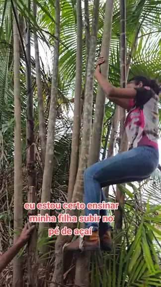 qual sua opinião eu ensinando minha filha subir no pé de açaí Más