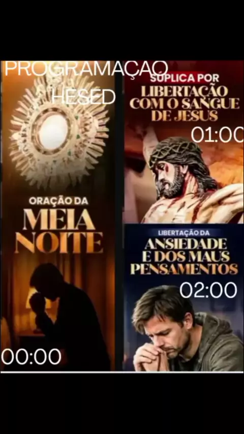 E vamos das primeiras Programação Hesed @irkelly_institutohesed_oficial (até meio dia) dia 06/04/26 até Jesus Voltar 😁🙏🏼🥰 00:00 – Oração da meia-noite 01:00 – Súplica por libertação 02:00 – Libertação da ansiedade 03:00 – Divina Misericórdia 04:10 – Santo Rosário 06:15 – Café + formação + SANTA MISSA 09:10 – São José 10:00 – Súplica com Santa Rita 11:00 – Orações para abençoar a casa 12:00 – Novena de Pompeia #fé #Deus #oração #jesus #amormaior