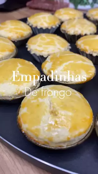 Empadinhas de Frango Massa: • 500g de farinha de trigo • 250g de margarina • 1 colher de chá de sal • 1 gema de ovo (para pincelar) Recheio: • 1 cebola pequena • 3 dentes de alho • 1 peito de frango desfiado • 200ml do caldo do cozimento (misturado com 1 colher de sopa de amido de milho) • 1 colher de sopa de páprica doce • 1 pote de requeijão • Sal a gosto • Cebolinha e coentro a gosto #Receita #empada
