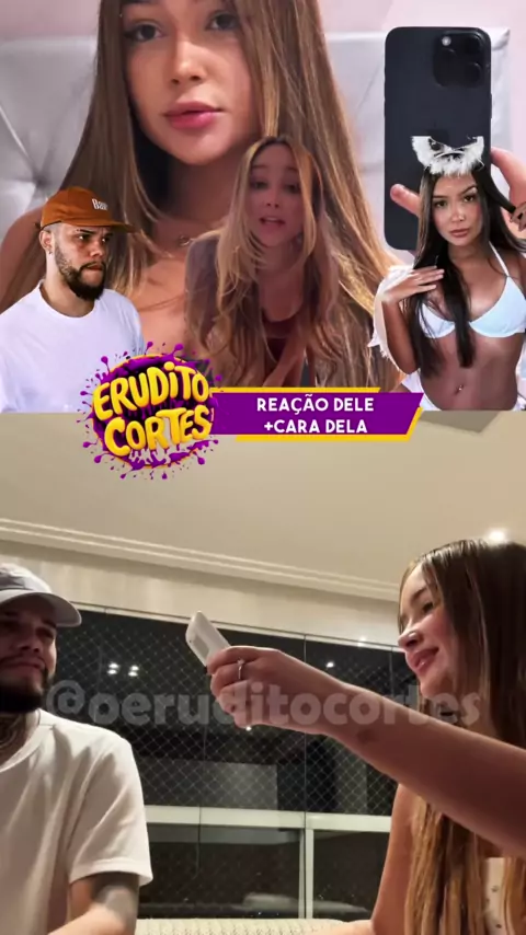 Ela toda feliz com as cortinas "MODERNAS" e ele acabou com a felicidade da Emily Ferrer, que isso @meikodrj @eeeuemily Veja a reação dele. Deus nos ajude!! O Erudito Cortes, uma família motivada a colecionar momentos! Siga e comente nossos cortes! #emilyferrer #meikod #mulher #bonita #humor