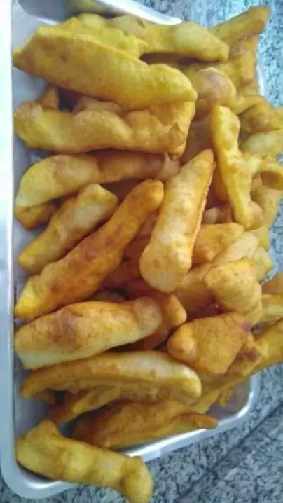 Massinha frita Meio copo de leite Meio copo de água 1 ovo Três colheres de açúcar Meia colher de sal 1 colher de pó Royal Farinha até dar o ponto Abra a massa corte as tirinhas e frite #receita