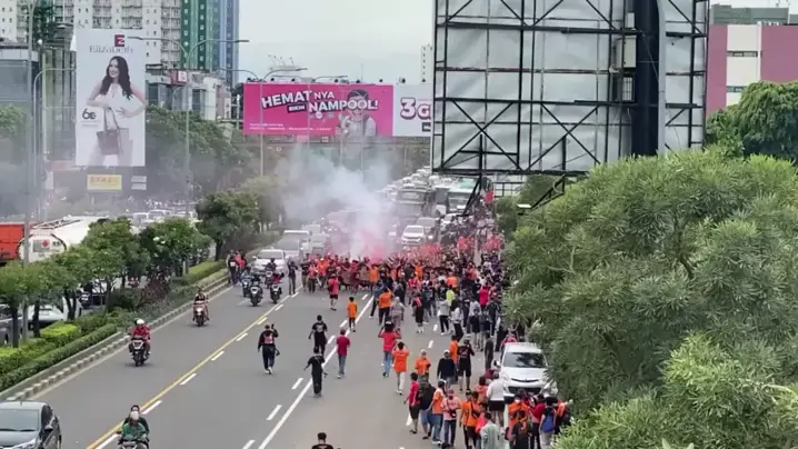 BEKASI FULL OREN!! AKSI CORTEO JAKMANIA MENUJU STADION PATRIOT SAAT MATCH PERSIJA VS AREMA
