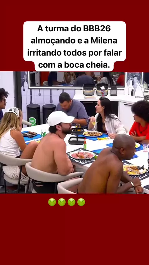 A turma do BBB26 almoçando e a Milena irritando todos por falar com a boca cheia.#Reality #bbbb26 #fofoca #famosos
