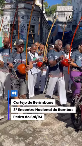 🎶🔥 Cortejo de Berimbaus – Pedra do Sal/RJ 🔥🎶 O som do berimbau tomou as ruas históricas da Pedra do Sal, marcando o 8º Encontro Nacional de Bambas. Um cortejo carregado de ancestralidade, respeito e muita energia, reunindo capoeiristas de vários cantos em celebração à nossa história e às raízes da capoeira. 🪘👣✨ #Papoeirando #Capoeiragem #Capoeira #Axé #Bambas