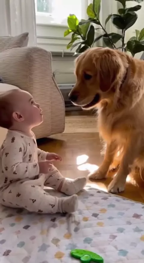 cachorro brincando com neném