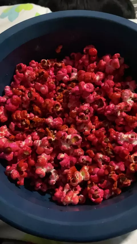 Ficou muito bom gente, é só colocar 6 colheres de cada ingrediente! Açúcar, água, pipoca, óleo e corante, só façamm #pipocadoce #pipocarosa