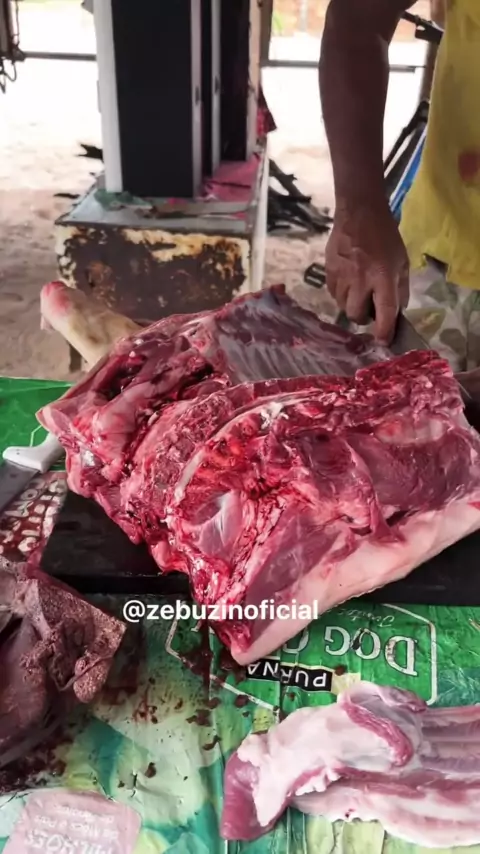 Cortando a carne de porco.