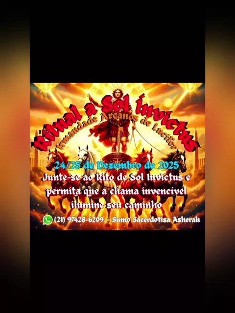 Ritual a Sol Invictus Junte-se ao Rito de Sol Invictus e permita que a chama invencível ilumine seu caminho. 24/25 de Dezembro de 2025. Contato: @Irmandade Arcanos de Lúcifer (21) 97428-6209 Sumo Sacerdotisa Asherah #SolInvictus #Mitra #Sol #viralvideo #kwai