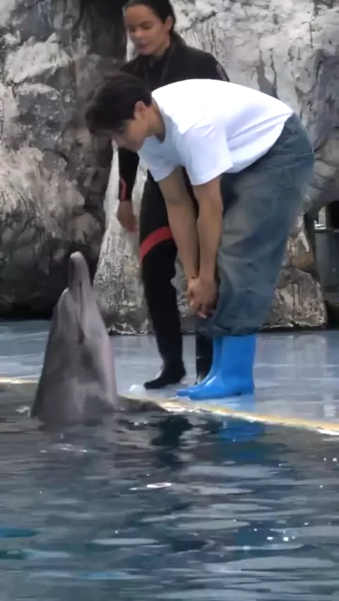 🎥 Atualização do ator tailandês #JoongArchen (#TheHeartKillers) via Twitter X X: Ele escreveu na legenda do post: "Nasci e nunca pensei que um golfinho iria me beijar na bochecha." muito fofinho 😍