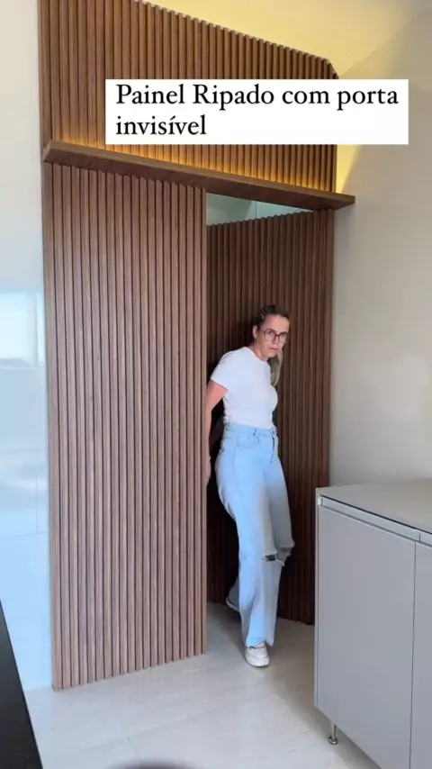 Painel Ripado onde tem entrada pra dispensa gostaram desse trab magnífico?#moveisplanejados #moveissobmedidas #mdf #marcenaria #sejacriador