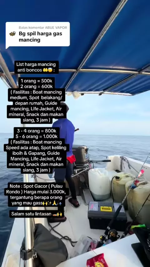 Membalas @ABUE VAPOR Yok lah om, cukupkan dulu stok dapur supaya tetap berasap… lalu siapkan pancingan, gas ke sabang dan hubungi#pemandusabang 🫡🙏🚤#sabang#mancingsabang#antiboncos#spotmancing#pulaurondo#rondoisland#wehisland#liburan#healing#jigging#jiggingfishing#popping#mancingpopping#ikan#mancing#laut#ikantoman#ikankerapu#ikangt#ikanmonster#ikanbesar#kawanmancing#sahabatangler#ladyangler#prillylatuconsina15#boatmancing#aceh#acehviral#bandaaceh#aceh#malaysia#medan#medan#danauto...