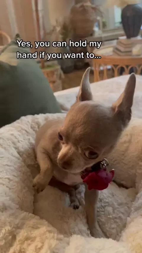 I guess you can hold my hand ma…#pennythebluechi#holdmyhand#puppiesof#chihuahua##momsbestfriend#dog#viral#cutedog#smalldog#smol#SmellLikeIrishSpring#youcanholdmyhand