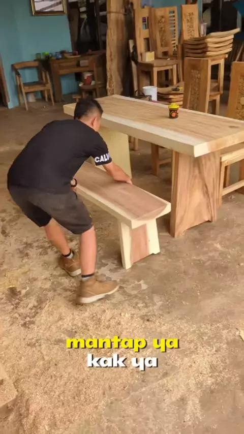 Meja makan dapur kayu trembesi solid #mejamakan #mejadapur #mejateras #mejataman #kursimakan #kursirreto #warungmakan