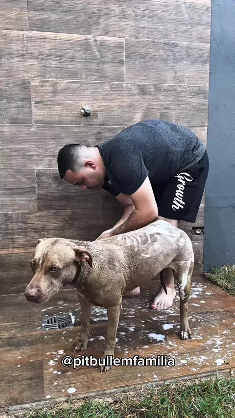 Rotina de banho da minha pitbull jade 🤎🐾 #kwai #pitbull #pet #cachorro #fy