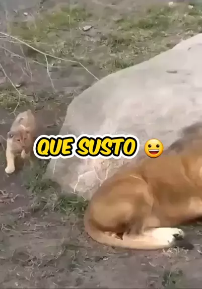 Filhote de leão assusta o pai 😂😂