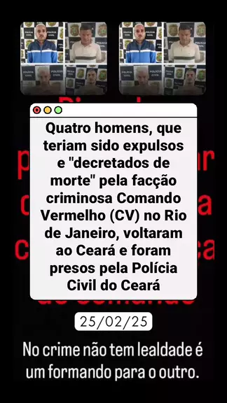 Quatro homens, que teriam sido expulsos e "decretados de morte" pela facção criminosa Comando Vermelho (CV) no Rio de Janeiro, voltaram ao Ceará e foram presos pela Polícia Civil do Ceará (PCCE), ao desembarcarem no Aeroporto Internacional de Fortaleza, #flagrante #noticiasdeultimahora #fortalezadomedo #flagrante #ceara3xmaisforte