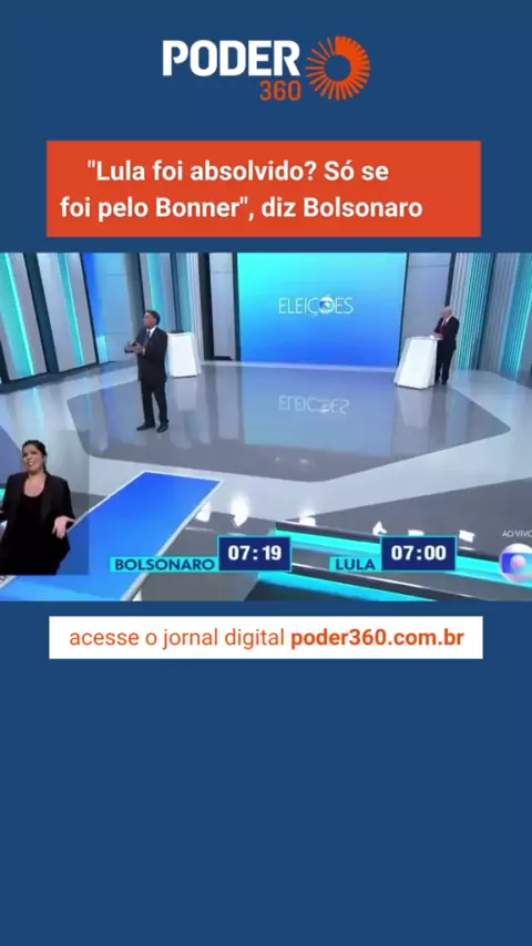 #DebateNaGlobo |#Lula foi absolvido só se foi pelo Bonner", diz#Bolsonaro. Presidente repetiu que o petista gostaria de indicar o apresentador da emissora como ministro do#STF. Acompanhe a cobertura das#eleições no @Poder360.#eleições2022#Notícias