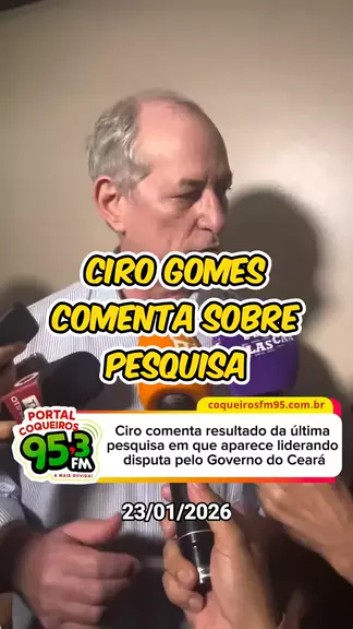 O ex-ministro Ciro Gomes comentou, nesta sexta-feira, o resultado da mais recente pesquisa do Instituto Paraná, que o aponta na liderança da corrida pelo Governo do Ceará em 2026, com 44,8% das intenções de voto, contra 34,2% do atual governador Elmano de Freitas.