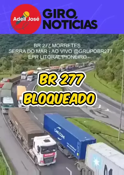 FEZ UMA TRANSMISSÃO AO VIVO | Queda de barreira interdita totalmente a BR-277 na Serra do Mar, em Morretes Uma queda de barreira no km 43 da BR-277, na altura da Serra do Mar, em Morretes (PR), bloqueia totalmente a rodovia nos dois sentidos na manhã desta segunda-feira. Equipes de emergência estão no local.