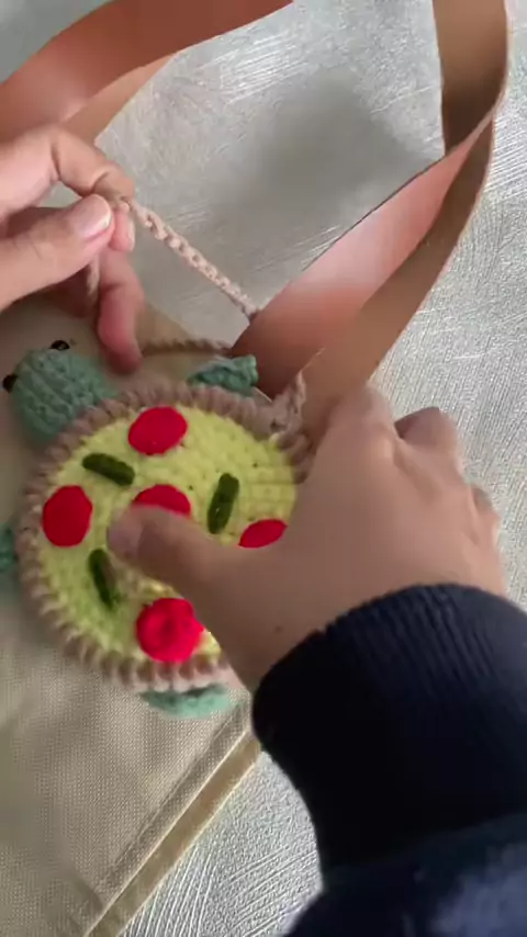 Crochet pizza turtle as bag charm, yummy and cute at the same time ππ’ #crochet #crochetturtles #crochetbagcharm #crochetpouch #crochettutorial #belajarrajut #serunyabelajar #