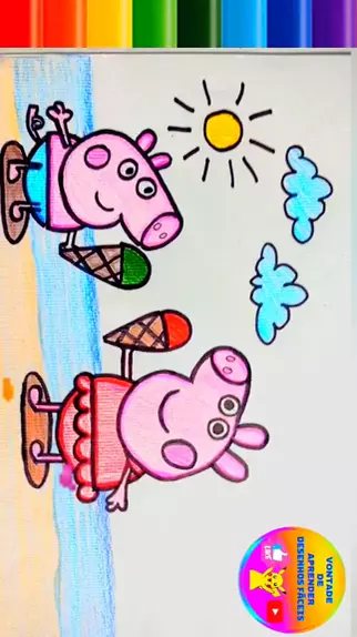 Como desenhar a Peppa e o George tomando sorvete na praia #desenho #tutorial #Pepa