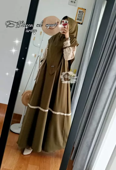 N*Shireen Set Syar'i* By Athata Bahan Ity Crepe Mix Monalisa Ld 105 PB 140 Busui Friendly Tali Serut Ada saku Harga || IDR 195.000