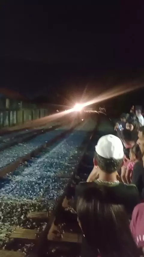 chegada trem natalino na cidade de Pindamonhangaba SP