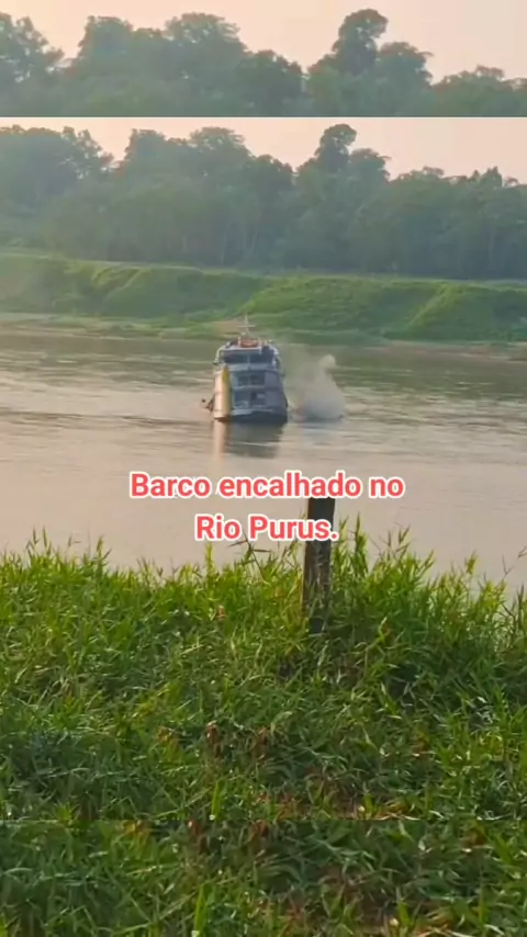 Barco encalhado no Rio Purus próximo a Canutama-Am