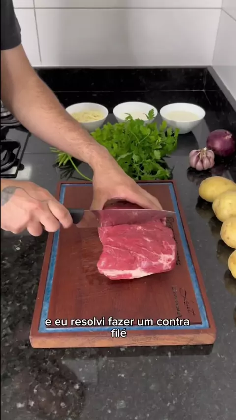 Contra filé com creme de alho e batata rústica 🤌🏻