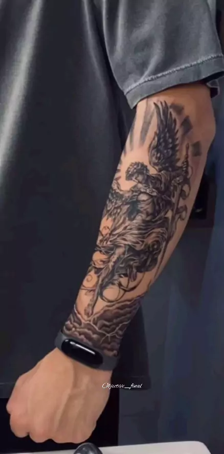 Tatuagem de Miguel arcanjo🖤 #miguelarcanjo #anjo #tatuagem