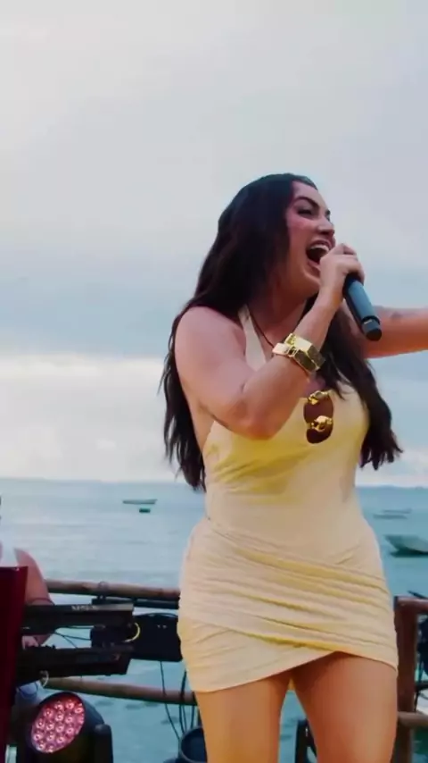 Ela realmente está muito bonita na cena — sorrindo, cantando e com uma presença super vibrante! 😍✨
