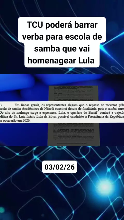 TCU poderá barrar verba para escola de samba que vai homenagear Lula. #noticias #politica