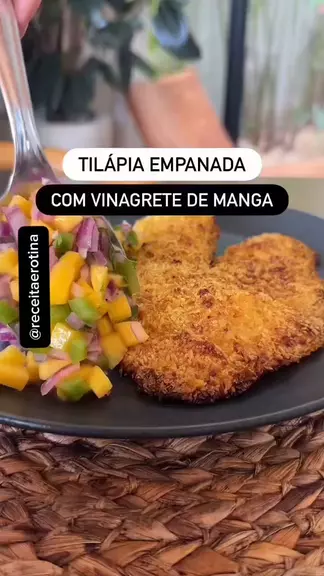 Tilápia Empanada no Coco + Vinagrete de Manga! 🥭🐟 Procurando uma receita leve, refrescante e super crocante? Essa combinação de tilápia com coco na Airfryer é a escolha perfeita! O toque especial fica por conta do vinagrete de manga (dica: use a manga menos madura para garantir aquele frescor único). ✨ O que você vai precisar: Filé de tilápia Para empanar: Ovo, farinha panko, coco ralado, cúrcuma e sal. Para o vinagrete: Manga, pimentão verde, cebola roxa, coentro e limão. 🔥 Preparo: 15