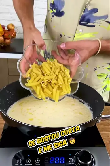 olha que macarrão maravilhoso 😍🥰😋 SIGA ME PARA RECEBER MAIS RECEITAS DELICIOSAS COMO ESTÁ 🤤 se vc gostou e quer a receita da um pulo lá no Instagram 💥💯 aqui não cabe a receita completa no Instagram 💥💯. INGREDIENTES: - 1 lata de milho - 700ml de leite - 250g de macarrão penne - 1/2 cebola - 3 dentes de alho - 1 c. de café de pimenta-do-reino - 1 c. de café de açafrão - 200g de bacon - 1 c. de sopa de requeijão - Salsinha - Muçarela - Queijo Parmesão #meupeté #receitas #Receita #video