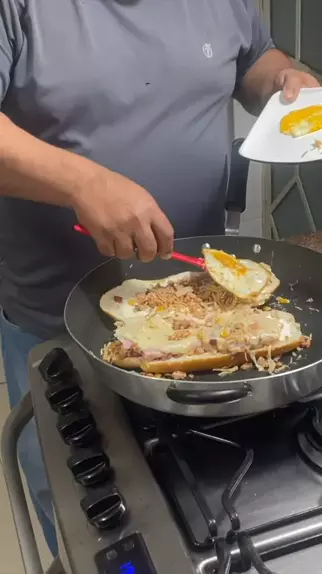Amiguinho a receita de hoje vai ser um delicioso sandubão de frango desfiado, bacon, mussarela, presuto, requeijão e ovo caipira. Acompanha ai amiguinho ficou mió de bão. Vem comigo. #sanduiche #sandubao #receitas