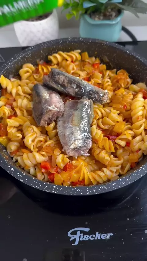 É só adicionar sardinha ao macarrão e não vai sobrar nada