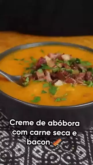 Creme de abóbora com carne seca e bacon 🥓 #caldo #CaldodeAbobora #receitasdalu #mimseguepramaisreceitas