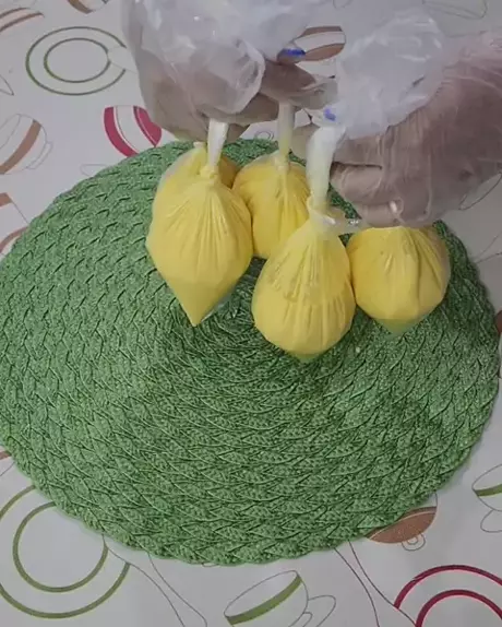 Ela fez pamonha no saquinho plástico.