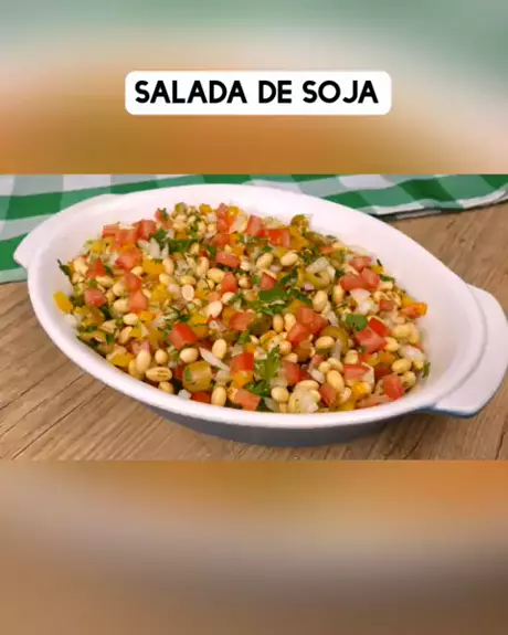 #Comidafamilia #Receita #maisgolds #saladadesoja #soja PARA DEIXAR DE MOLHO: Soja em grão 1 xíc Limão espremido ou vinagre 2 col de chá Água até cobrir SALADA: Água 1,2 L Cebola picada 1/2 unid Pimentão amarelo 1/2 unid Azeitona verde fatiada 1/2 xíc Tomate 1 unidade Salsinha picada a gosto MOLHO: Azeite de oliva 3 col de sopa Limão espremido 1 col de sopa Sal 1 col de chá Pimenta do reino a gosto