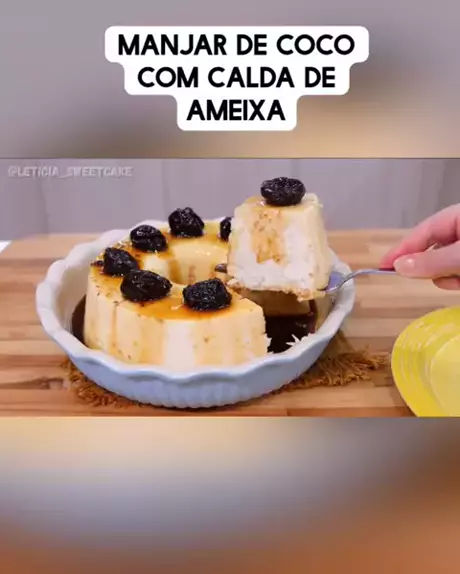 #EstrelaDeFamília #foryou #sejacriador #manjardecococomcaldadeameixa #viral Manjar: 1 litro de leite integral 6 colheres (sopa) de amido de milho 1 cx de leite condensado 1 cx de creme de leite 200 ml de coco 100g de coco seco em flocos Calda: 1 xíc (chá) de açúcar refinado 2 colheres (sopa) de açúcar mascavo 200ml de água morna 150g de ameixa seca sem caroço