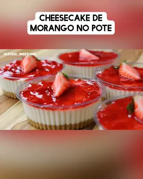 #foryou #Receita #cheesecakedemorango #Comida #facaevenda BASE: 150g de bolacha de maisena 75g de manteiga sem sal derretida CHEESECAKE: 80g de água 12g de gelatina incolor sem sabor 395g de leite condensado 200g de creme de leite UHT 300g de cream cheese usei marca Scala, pode usar PHILADELPHIA 20ml de suco de limão (meio limão) Raspas de um limão GELEIA: 300g de morango (1 bandeja) 100g de açúcar Usei 25g em cada cheesecake para cobrir todas.
