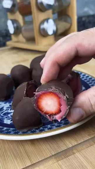 Bombom moranguinho melhor que moranguete #sobremesa #morango #bombom #caseiro #delícia
