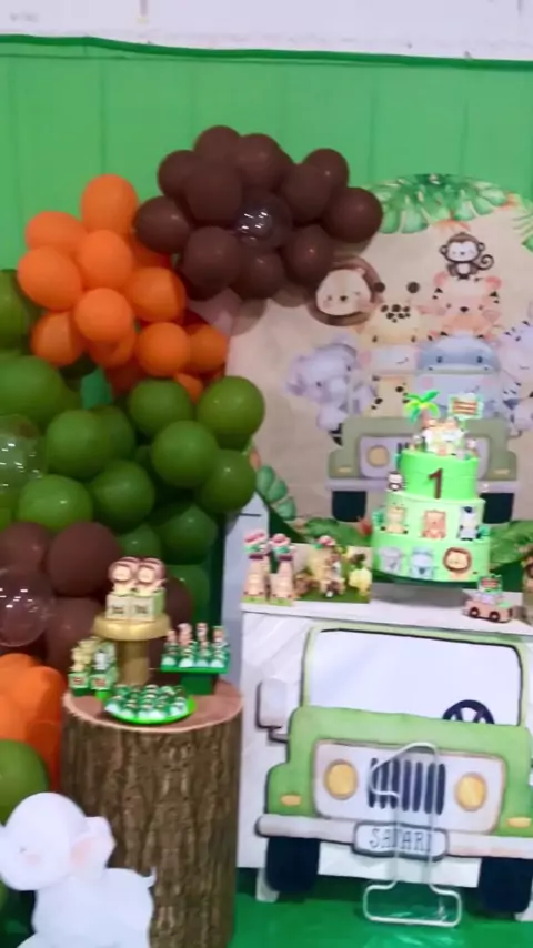 Decoração e bolo do Safari 🥰🥰 todo o nosso trabalho 🥰