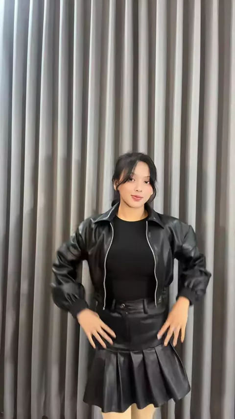 Leather Jacket Crop Mix Skirt Leather🖤✨ bikin tampilan kamu On point #leather #jacket #rekomendasioutfit #riseleather #ootdfashion