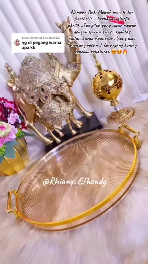 Membalas @Susi Desy257 punya saya warna GOLD KK ..πππ Nampan Baki Mewah murah dan Aesthetic .. berbahan plastik akrilik ..Tampilan yang super mewah dengan warna emas . kualitas sultan harga Ekonomis . Yang mau Langsung pesan di keranjang kuning sebelum kehabisan πππ₯Β #nampan #nampanaesthetic #nampangold #nampanakrilik #nampanmurah #nampanmultifungsi #bakitransparan #baki #nampanemas #homedecor