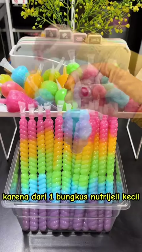 Puding Sedot Pelangi bentuk Buah & Ulir Panjang #pudot #jelly #dessert #jajanan #idejualan #racun #racunrivel #belilokal #wibgajian #food #cemilan #marketday