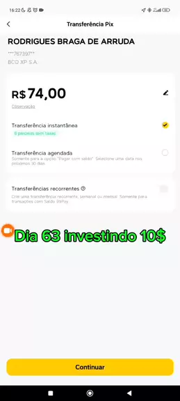 Dia 63 investindo 10$ Saldo atual 633
