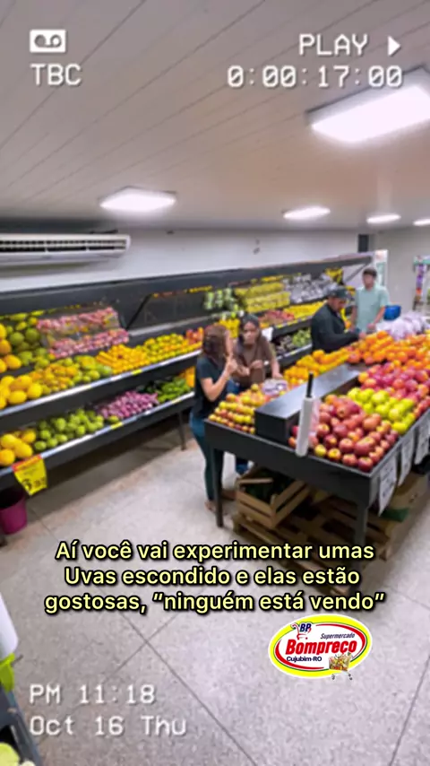 Câmeras de segurança flagram jovens comendo frutas na sessão de hortifruti